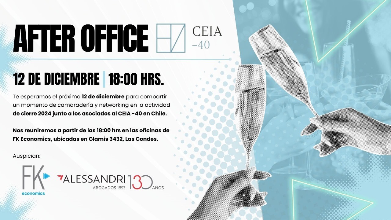 El CEIA-40 Capítulo chileno organiza el 12 de diciembre de 2024, a las 18:00 horas, el After Office para compartir un evento de networking para el cierre de 2024.