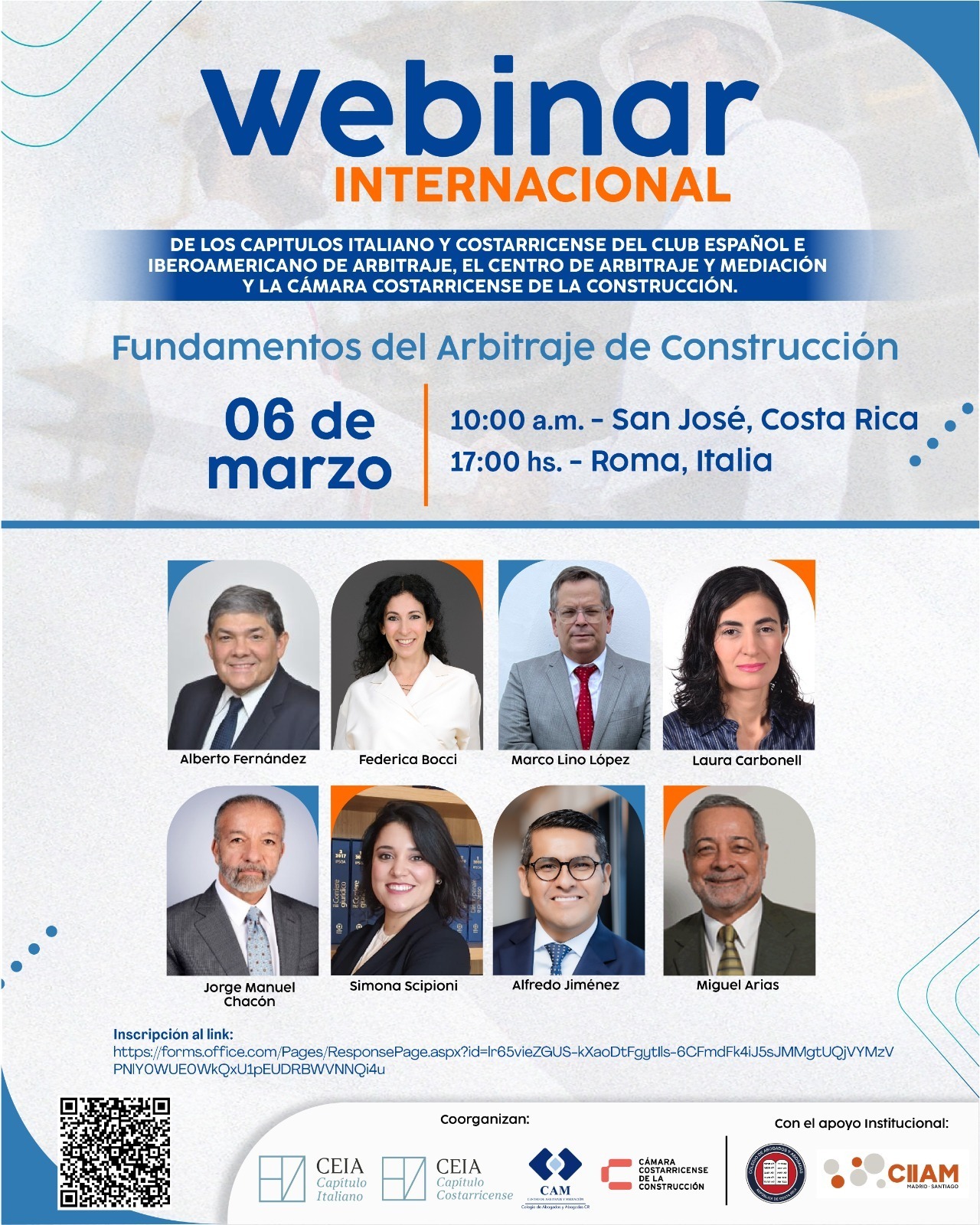 El Capítulo costarricense y el Capítulo italiano del CEIA coorganizan el 6 de marzo de 2026, a las 10:00 (Costa Rica) / 17:00 (Italia), el webinar titulado «Fundamentos del Arbitraje de Construcción».