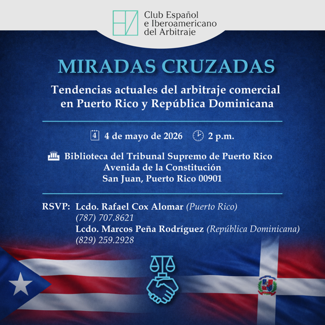 El Capítulo de Puerto Rico y República Dominicana organiza el 4 de mayo de 2026, a las 2:00 pm, el evento titulado «Tendencias actuales de arbitraje comercial en Puerto Rico y República Dominicana».